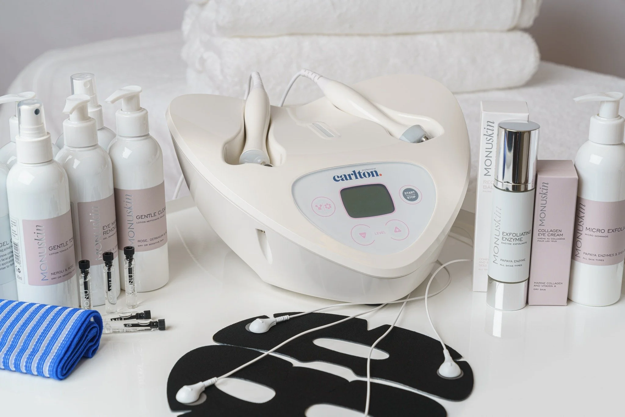 Our range continues to evolve, with the addition of the very latest Carlton ‘Concept’ machines, that have seen the latest technologies of Radio Frequency and Electroporation added to our extensive range of treatment options. Our treatment product range that include specialist ampoules, ionised gels and serums, alongside pre and post treatment products perfected for every client, make Carlton Professional an affordable and profitable option for every salon and spa.